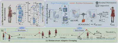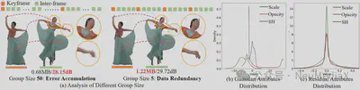 近年来,体积视频(Volumetric Video)作为沉浸式媒体的重要形式,逐渐成为虚拟现实、增强现实及未来互联网应用的关键内容载体。然而,与传统二维视频相比,体积视频在存储、传输带宽与实时渲染等方面仍面临显著挑战,尤其在网络条件不稳定的移动端设备上,这一问题更为突出。针对现有方法存在单一模型多码率支持不足、实时解码性能有限以及复杂运动场景鲁棒性不佳等问题,上海交通大学、上海AI Lab、上海科技大学等单位的研究团队联合天翼视讯科技有限公司提出了一种新的压缩框架——4DGCPro,首次在动态高斯表征单一模型中实现了多码率支持,并能在手机等轻量级设备上完成实时解码与高保真渲染。